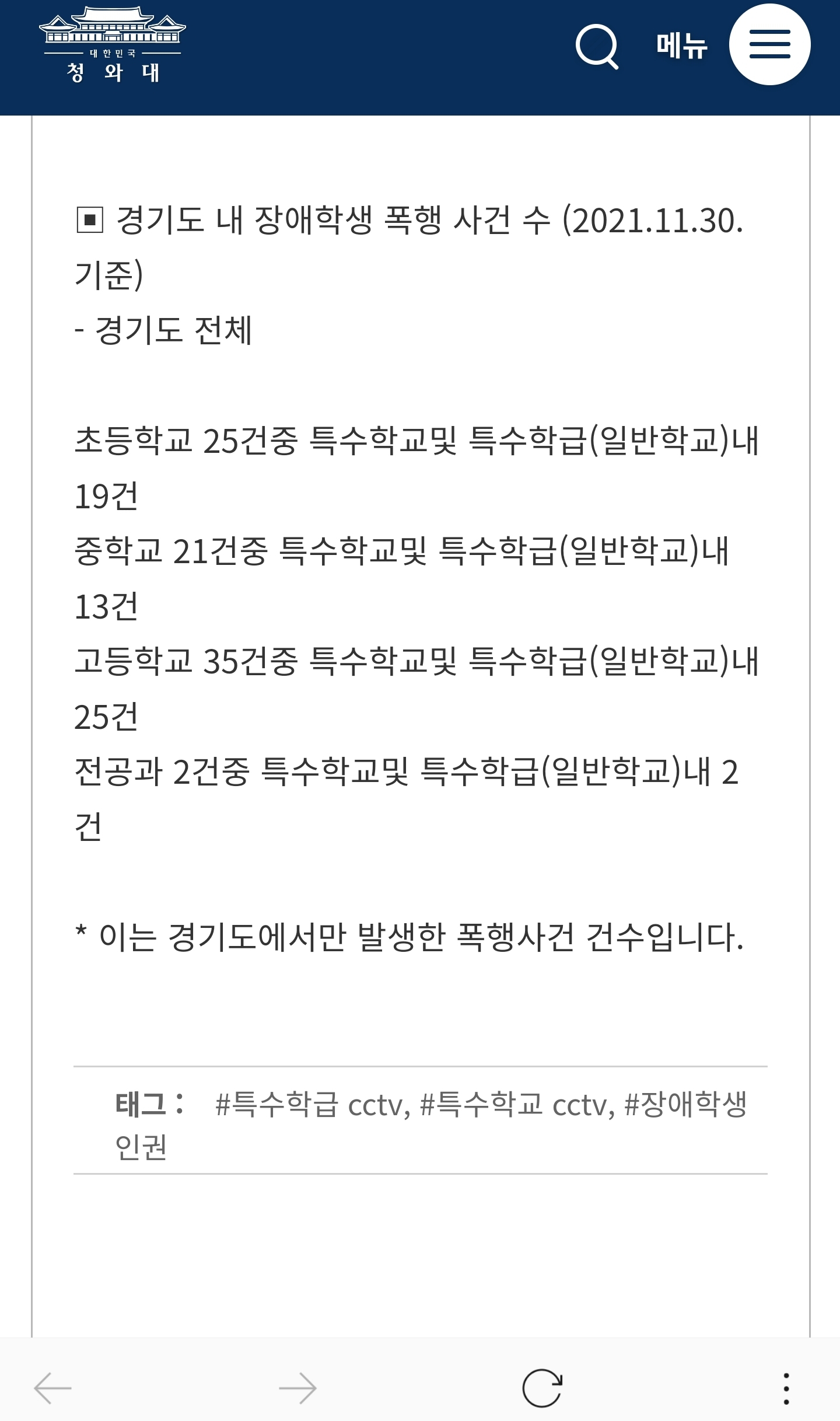 장애학생과 특수교사들의 인권보호를 위해 특수학급에 cctv를 설치해주세요 > 대한민국 청와대